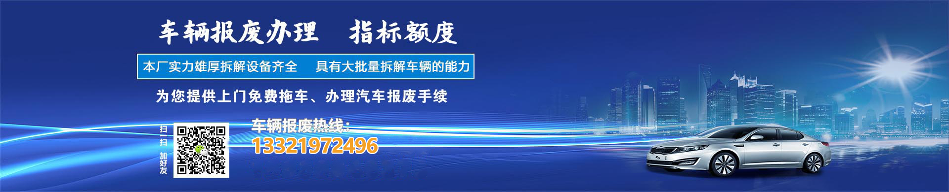 如果您的车辆需要报废或有相关问题咨询,请您拨打网站上的24小时服务电话,我们会耐心细致热情地为您解答问题,并提供免费上门拖车免费办理报废手续的优质服务。